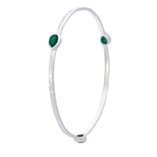 Simi Three Stone Stacking Bangle: Silver Green Onyx