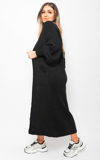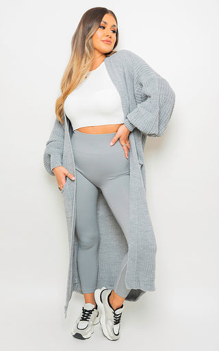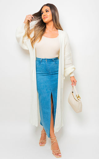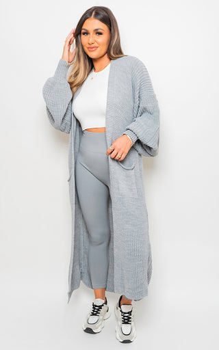 - Chunky Knitted Balloon Sleeve Long Maxi Cardigan