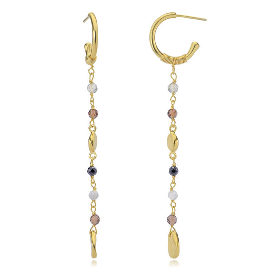 Artisan handcrafted Metal: 22 Karat Gold on recycled Brass Gemstone: Labradorite, Black Onyx & Smoky Quartz Hoop diameter: 15mm Total Length: 74mm All jewellery arrives in our luxury soft pouch and box Step out in style...Regular price £55.00 -