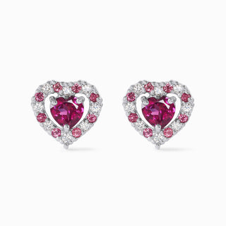 - Red Heart Rhodolite Garnet Stud Earrings in Sterling Silver