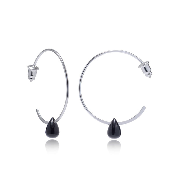Hera Wire Hoop Earrings with Teardrop Stone: Silver Black Onyx