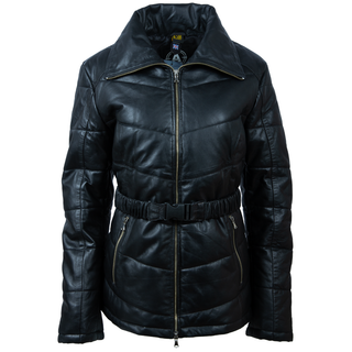 Crafted from premium genuine sheep leather, this puffer coat combines timeless elegance with modern edge. Designed with a high windshield collar and a press-buckle belt with ribbed detail, it beautifully defines the silhouette while keeping you warm and comfortable.