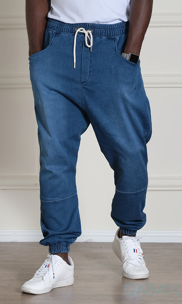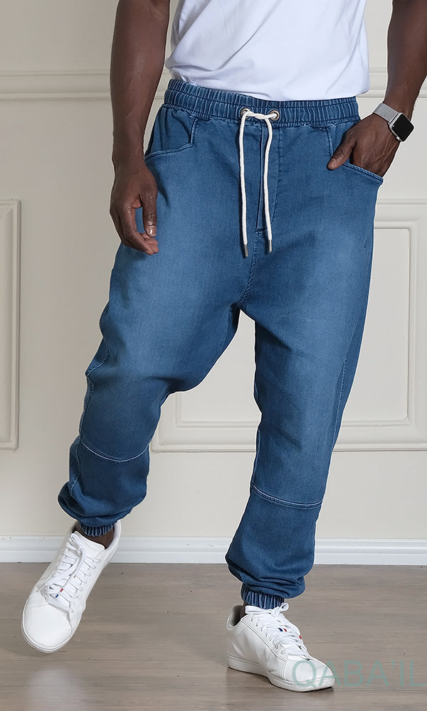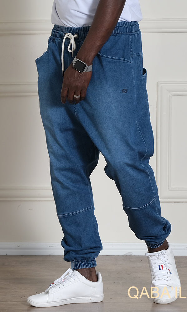 - Relaxed Fit Stretch Cuffed Jeans in Ocean Blue