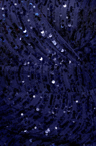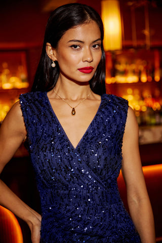 - Yumi Navy Sequin Fitted Wrap Dress With Split Hem