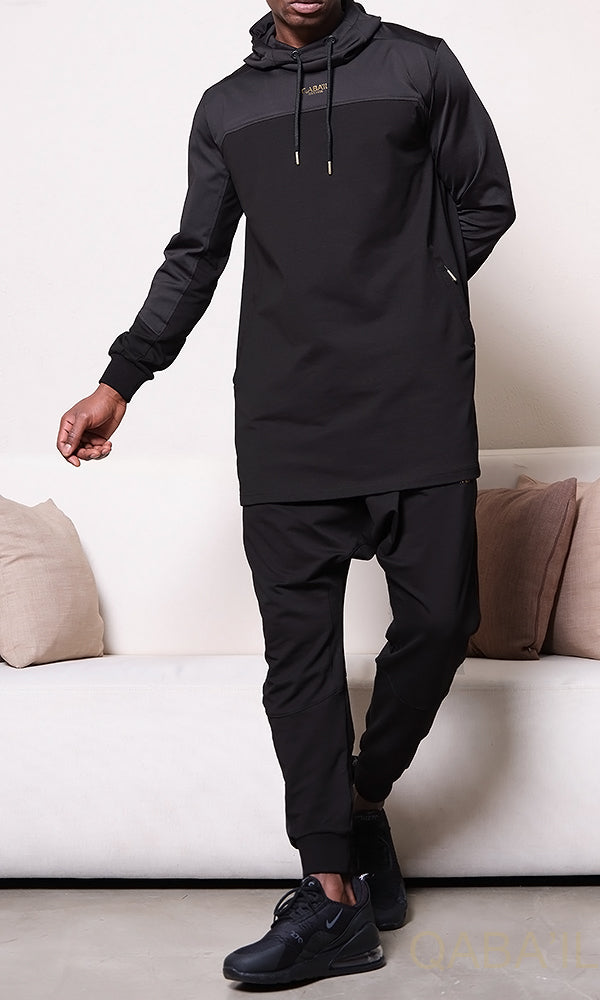 DELTA Kamisuit Two-tone Hooded Set in Black & Black