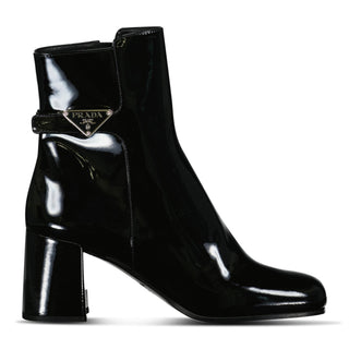 - Prada Tronchetti Ank Boots in Black Patent Leather