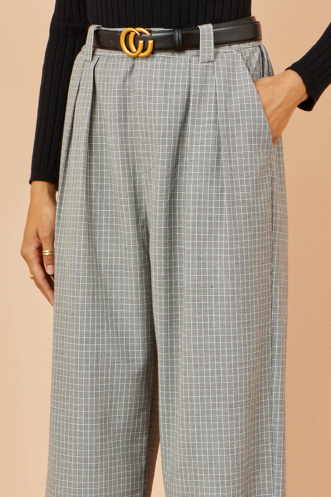 - Yumi Grey Check Wide Leg Trousers