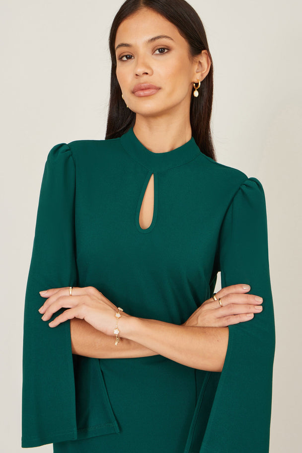 Yumi Green Fitted Midi Dress With Flute Sleeves