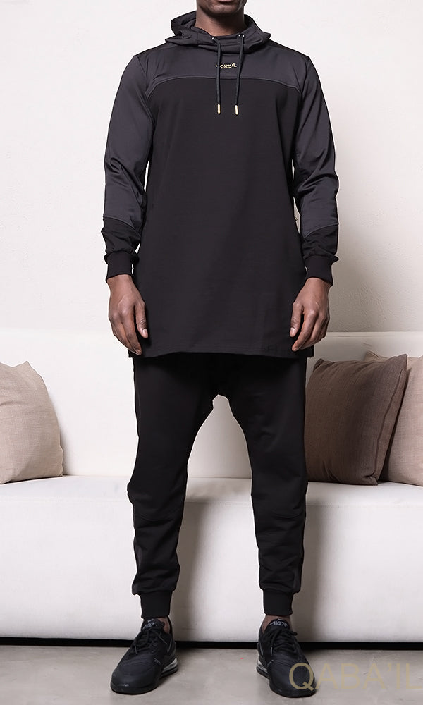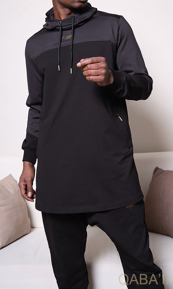 DELTA Kamisuit Two-tone Hooded Set in Black & Black