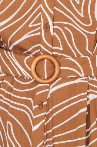 Yumi Brown Abstract Swirl Print Relaxed Midi Shirt Dress With Belt