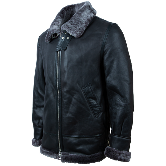 Stay warm in style with this classic men’s aviator jacket, crafted from premium, super-soft genuine shearling sheepskin leather. The striking black finish with silverback fur lining gives it a bold and timeless look, perfect for making...Precio regular £349.99