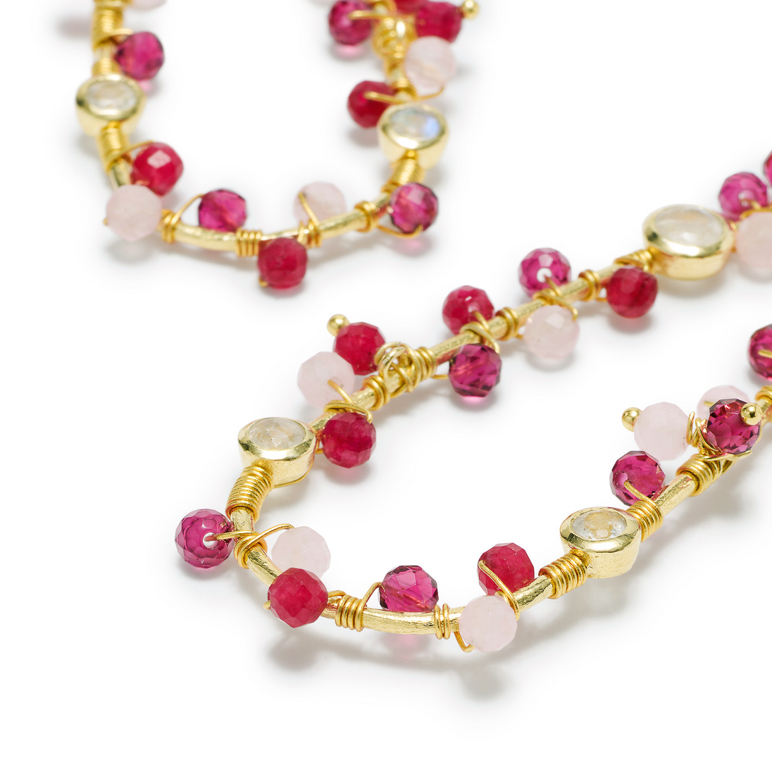 - Hydra Large Teardrop Wire-Wrapped Gemstone Earrings Moonstone, Rose Quartz, Pink Jade and Pink Tourmaline