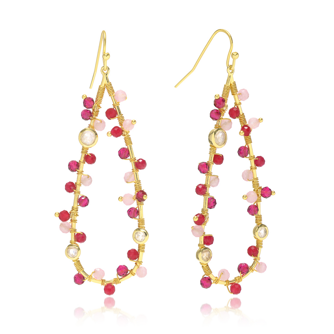 Make a statement with these unique and cool Hydra Large Teardrop Wire-Wrapped Gemstone Earrings. Crafted with mixed pink gemstones.