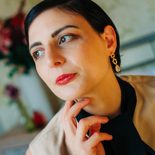 Inspired by the Moirai, the three sisters of fate. These earrings trace the delicate threads that draw us to serendipitous moments — a quiet homage to the invisible weave of destiny.