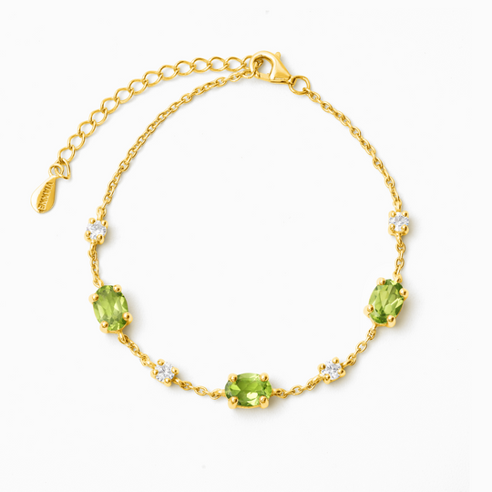 This captivating bracelet features natural peridots - the beautiful vivid green gemstones and adorned with sparkly simulated diamonds. The timeless and elegant design is perfect for adding sparkle to your outfit and will make a great...Precio regular £109.00 -