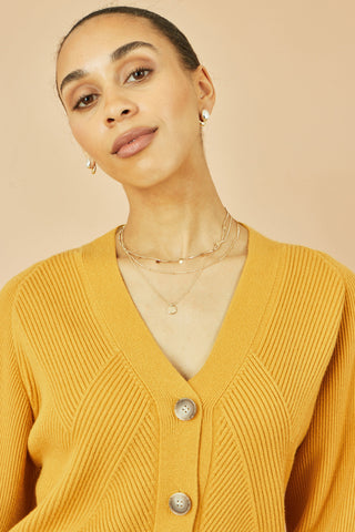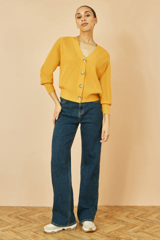 - Yumi Mustard Relaxed Fit Cardigan With Stitch Detail