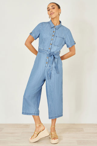 It’s lightweight, it’s contemporary, it’s our Yumi Light Denim Button Jumpsuit. Expertly crafted from pure cotton, the chambray jumpsuit is lightweight and flowing. With a semi-fitted shape enhanced by a waist tie, buttons run down the front and pockets sit on the side for practicality. The flared culotte trousers means you’ll feel comfortable at all moments of the day.