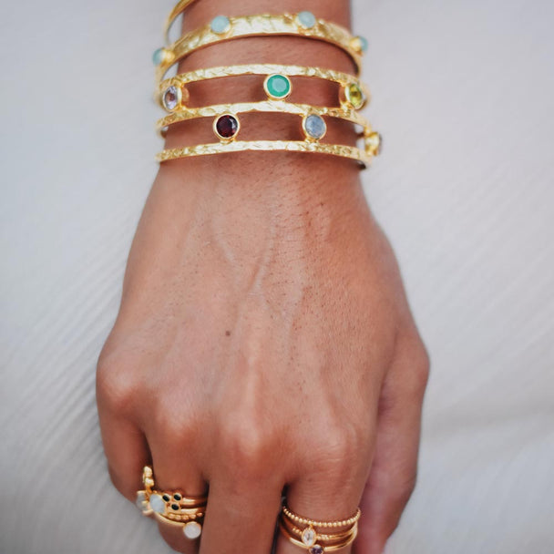 Venus Gemstone Bangle with Garnet, Peridot, Labradorite and Amethyst