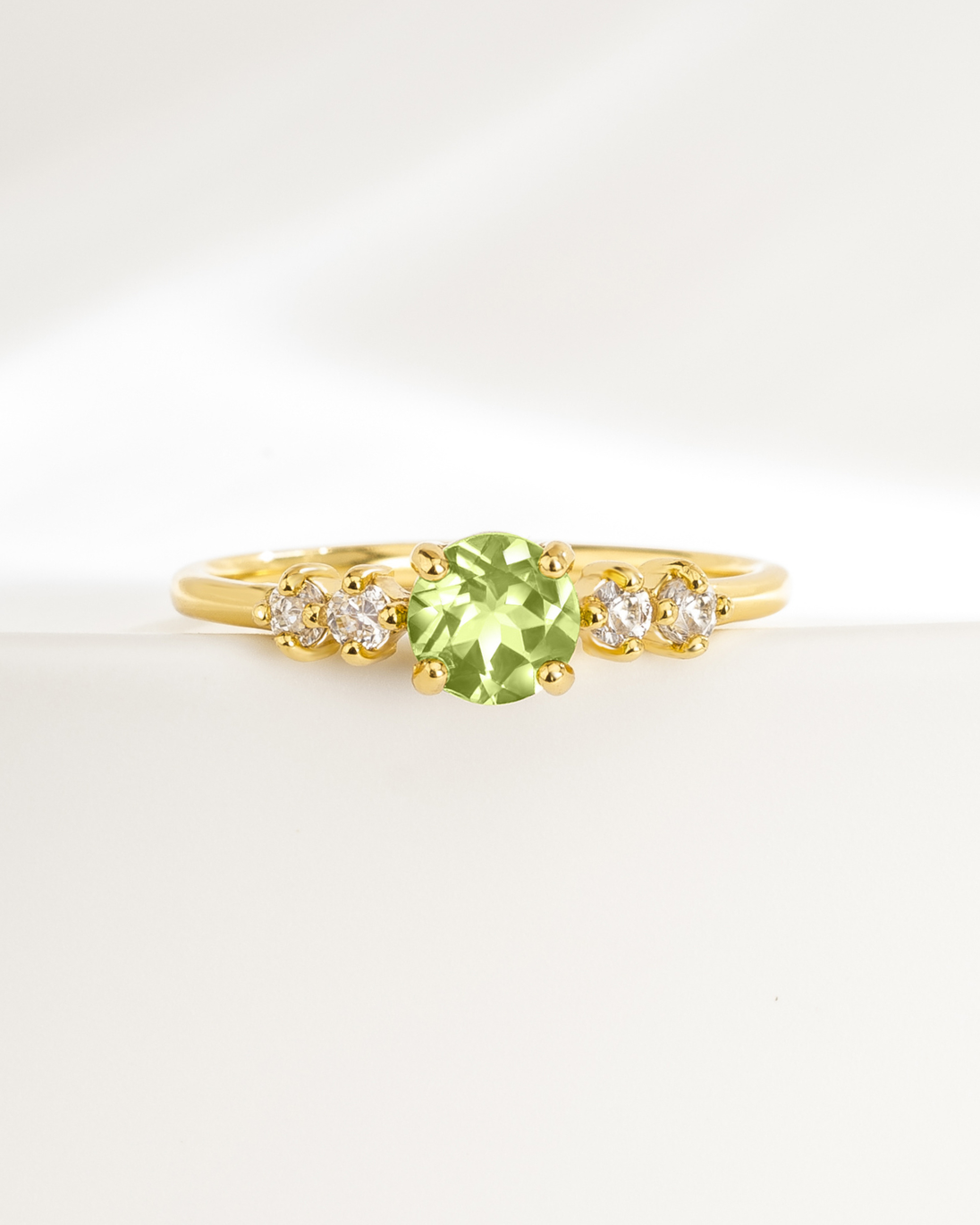 - Ring - peridot round cut 5 mm (Total 0.5 carat) and premium simulated diamond