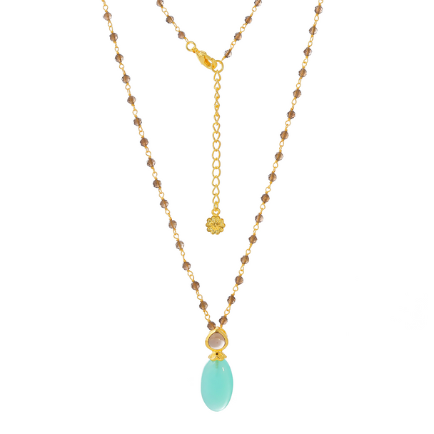 Persephone Double Gemstone Beaded Chain Necklace Pariba Onyx & Smoky Quartz