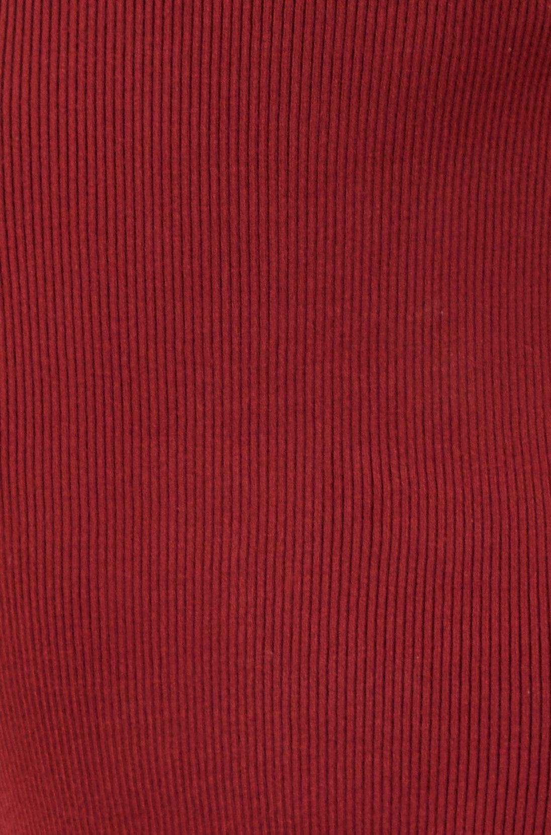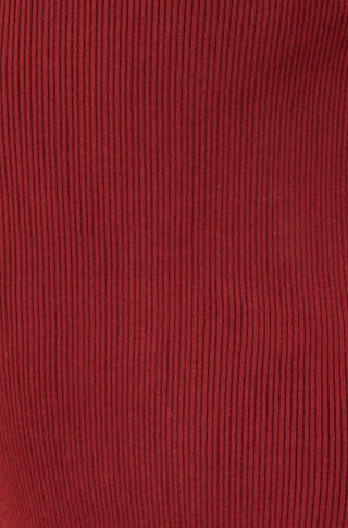 Yumi Burgundy Bardot Knitted Fitted Midi Dress
