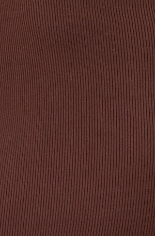 Yumi Brown Bardot Knitted Fitted Midi Dress