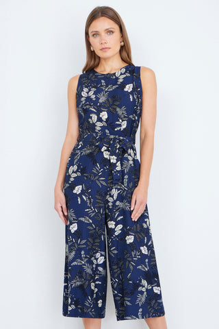 - Yumi Navy Leaf Culotte Jumpsuit
