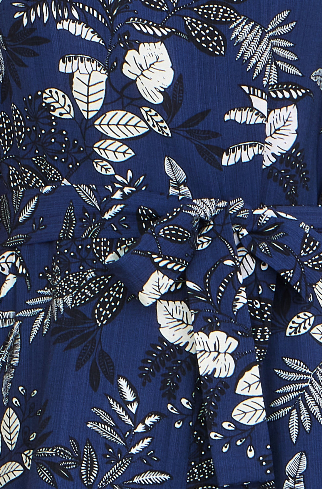 - All-over leaf print with a sleeveless, round-neck silhouette