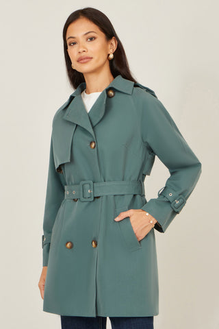 The easy and classic style of this trench coat will see you through the season. In a lovely pop of colour that will blend into your wardrobe effortlessly. The belted style, with pockets and a statement colour adds to the chic look. Hemmed at the hip for a mid length coat that is easy to style with jeans and trainers.