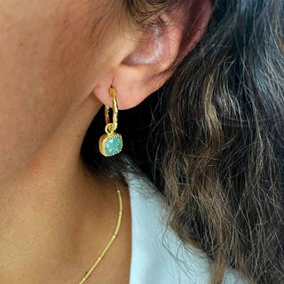 Tetra Square Gemstone Charm Hoops with Amazonite